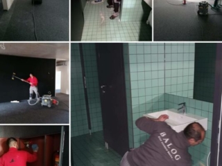 Schlussreinigung des gesamten Gebäudes, vom Keller bis zum Dachboden mit Balkonen und Terrassen, vor Übergabe an die Benützer. Reinigungsmethode nach Erfordernis durch Waschen, Wischen, Saugen und dergleichen. Abfälle und Verunreinigungen sammeln, zusammenkehren, abtransportieren und entsorgen.