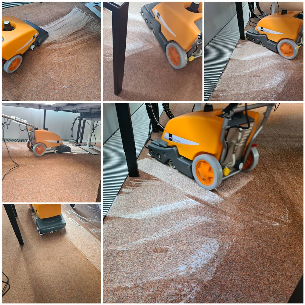- Shampoonieren: Die wichtigste Reinigungsmethode für Teppiche ist das Shampoonieren des Bodenbelags mit anschließender Aufnahme des Schaums und des gelösten Schmutzes mit Hilfe eines Wassersaugers.
